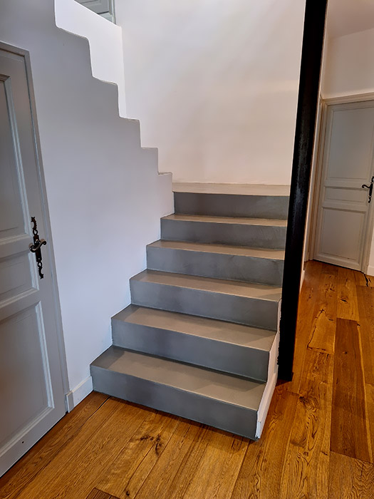 Chaque escalier en béton ciré que je réalise est pensé comme un projet sur mesure, où le travail artisanal du béton ciré me permet d’obtenir un rendu précis et harmonieux, parfaitement adapté aux volumes et à l’architecture de chaque maison.